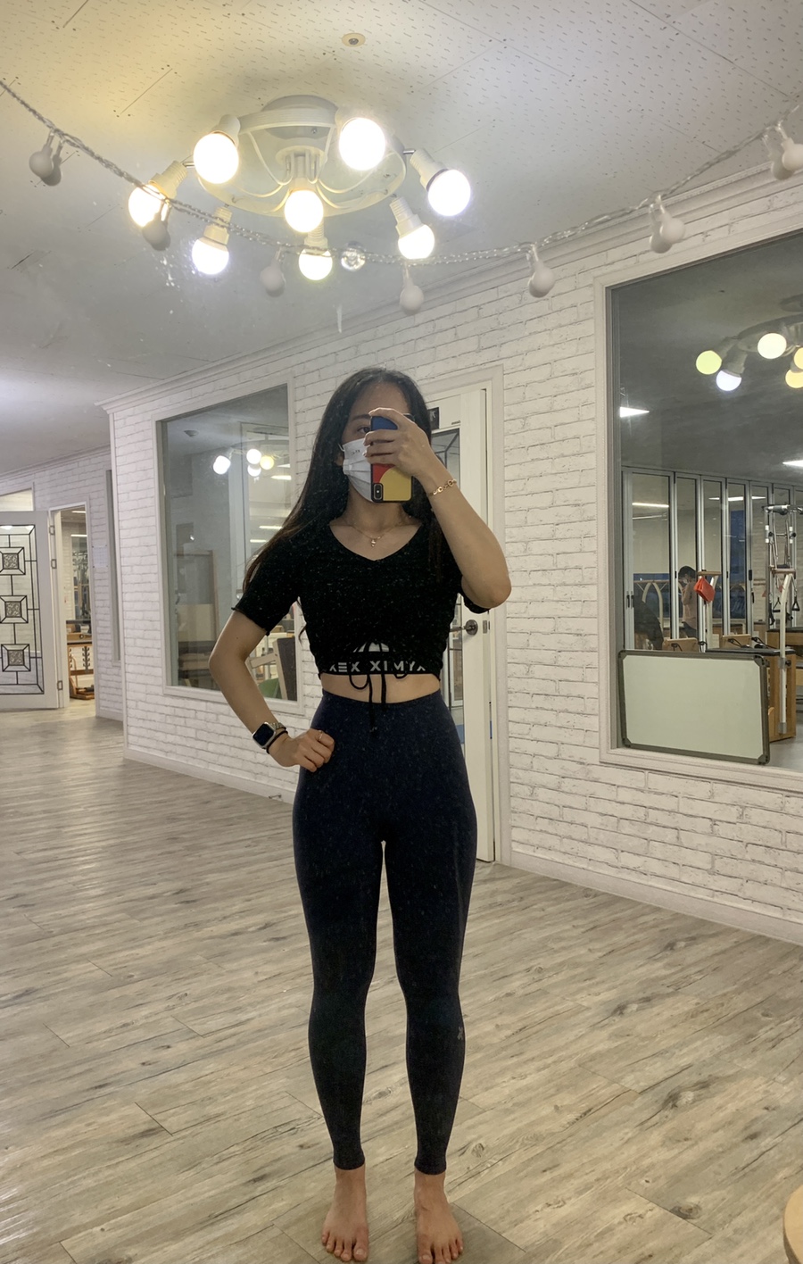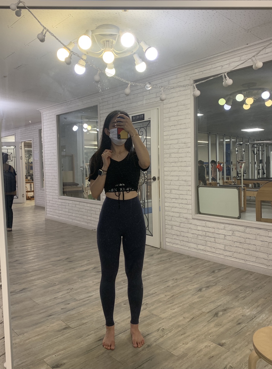 너~무 짧아서 운동 할때만 입어요.. 뒤는 앞보다 길어서 허리는 가리는 듯!